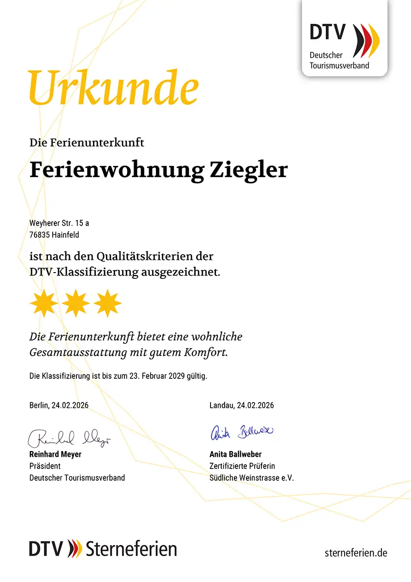 Durch den Deutschen Tourismus Verband e.V. mit 3 Sternen klassifiziert.